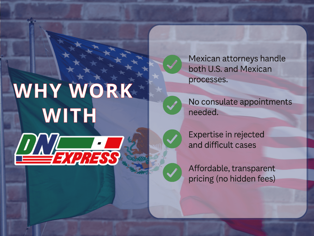 Our team often resolves document issues directly in Mexico, avoiding months of waiting and consulate bottlenecks.