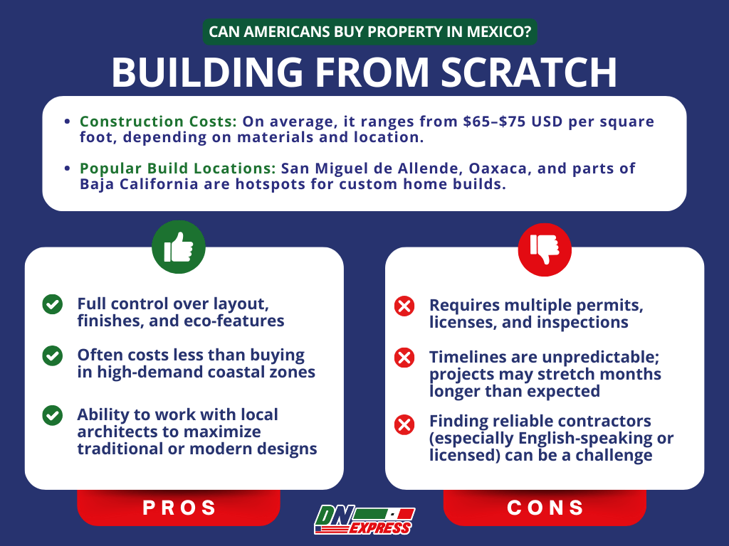 - Popular Build Locations: San Miguel de Allende, Oaxaca, and parts of Baja California are hotspots for custom home builds.