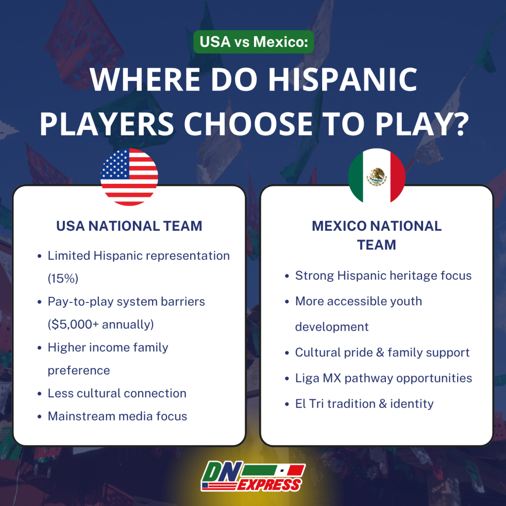 Growing up in cities like Los Angeles, Houston, or El Paso, it's common to hear English on the field and Spanish at home. Players navigate both worlds daily. And when it comes time to choose a national team, the question often becomes: Where does my heart belong?
