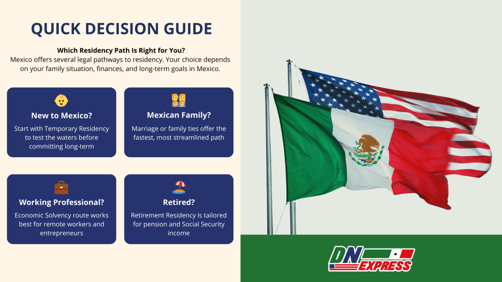 Mexico offers several legal pathways to residency. Which one is right for you depends on your family situation, finances, and long-term goals: