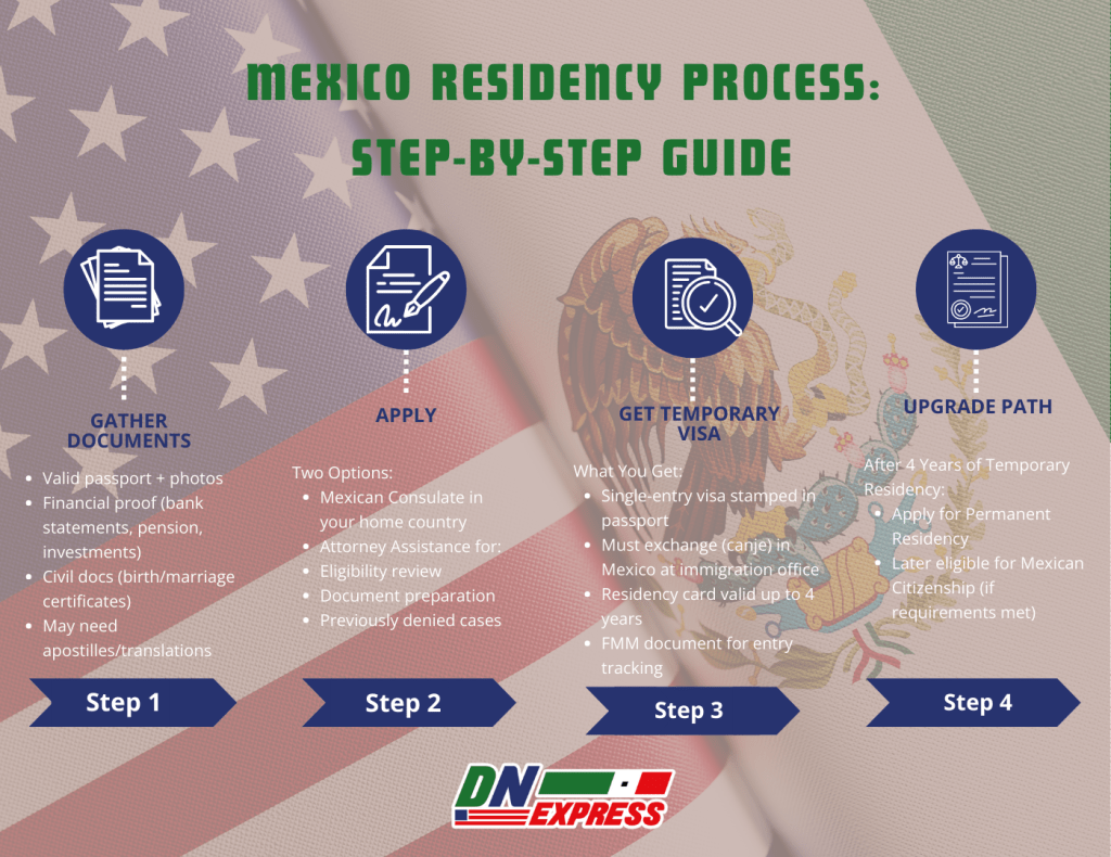 Getting residency in Mexico involves a few key steps. While the exact process can vary by consulate or case type, here's the standard flow: