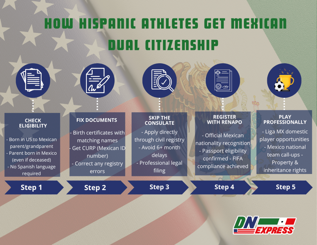 For athletes, citizenship isn't personal, it's professional. Many U.S.-trained soccer players, boxers, and Olympic hopefuls want to compete for Mexico but are blocked by paperwork. We've seen players lose roster spots, miss trials, or delay their careers because the consulate denied their application or told them they needed to “prove” additional requirements.