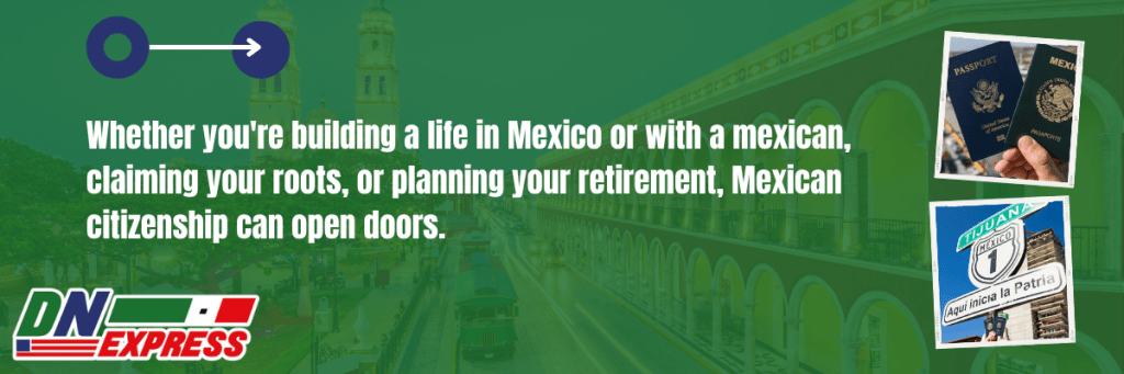 Whether you're building a life in Mexico or with a mexican, claiming your roots, or planning your retirement, Mexican citizenship can open doors.Â