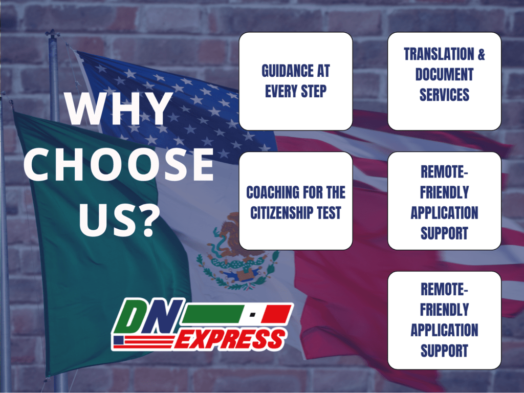 Birth certificates, affidavits, apostilles, and more, all handled in-house, including notarized Spanish translations. - Coaching for the Citizenship Test