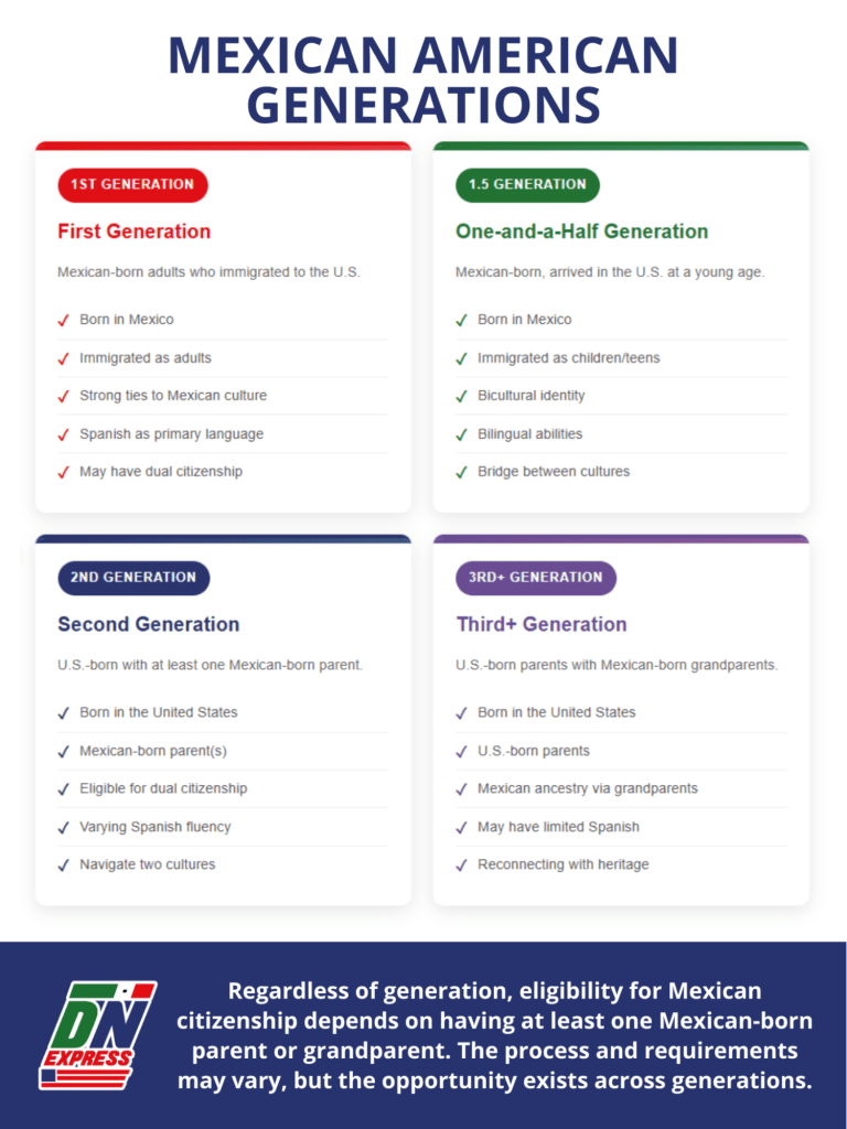 - “Can 2nd-gen Mexican American get dual citizenship?” Yes, typically via your Mexican-born parent (by descent). Start with a Mexican citizenship application review.
